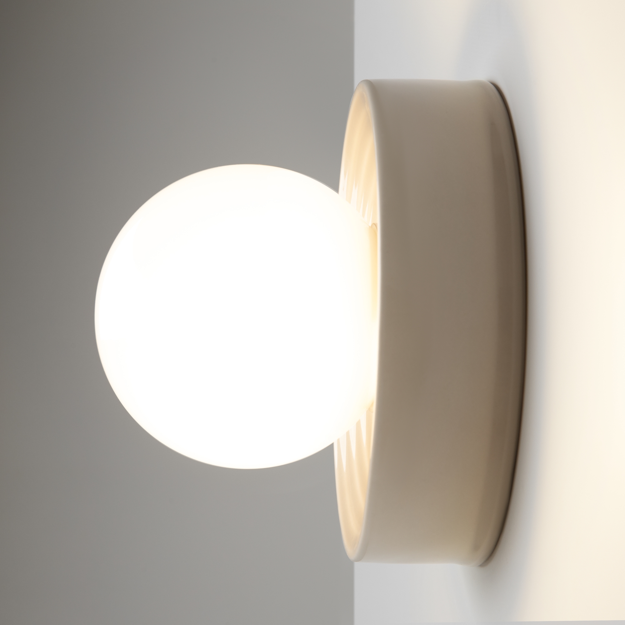 Настенные светильники серии Careless отражают дух лёгкости и озорства. Простые игривые формы: плафон-сфера из белого стекла и керамическое основание с радиальным рельефом. Глянцевая глазурь керамики в двух цветах: кремово-белая (RAL 9001) или серебристо-серая (RAL 7001). Серия представлена в двух размерах: основание 220 мм и плафон 150 мм; основание 160 мм и плафон 100 мм. Это позволяет составлять гармоничные композиции на стенах. Светильники серии Careless дополнят и освежат любой интерьер.