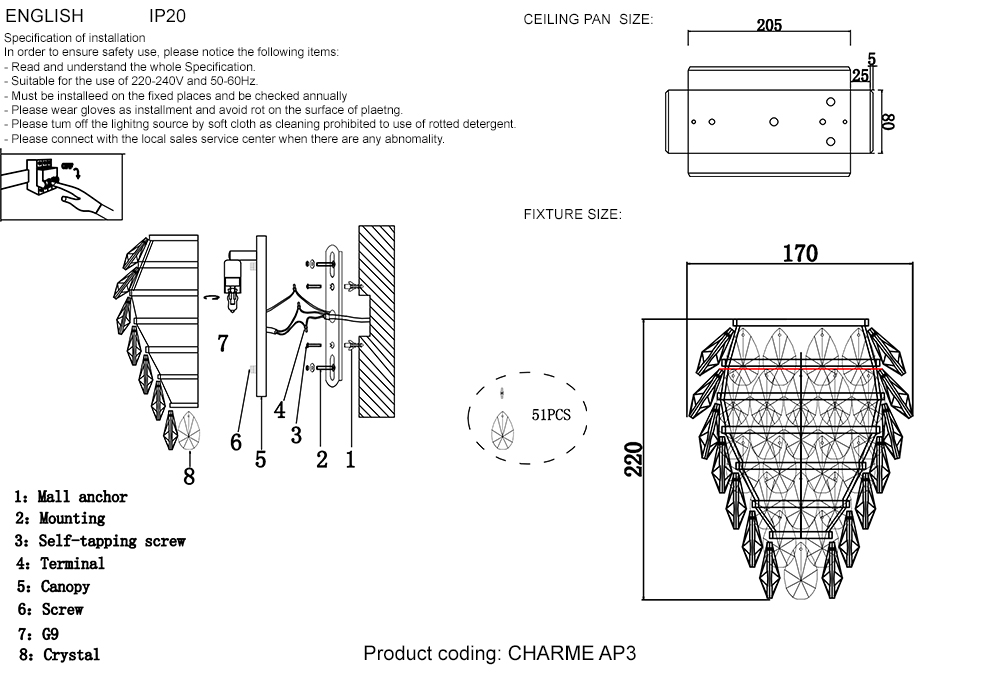 | Материал подвесок | хрусталь |