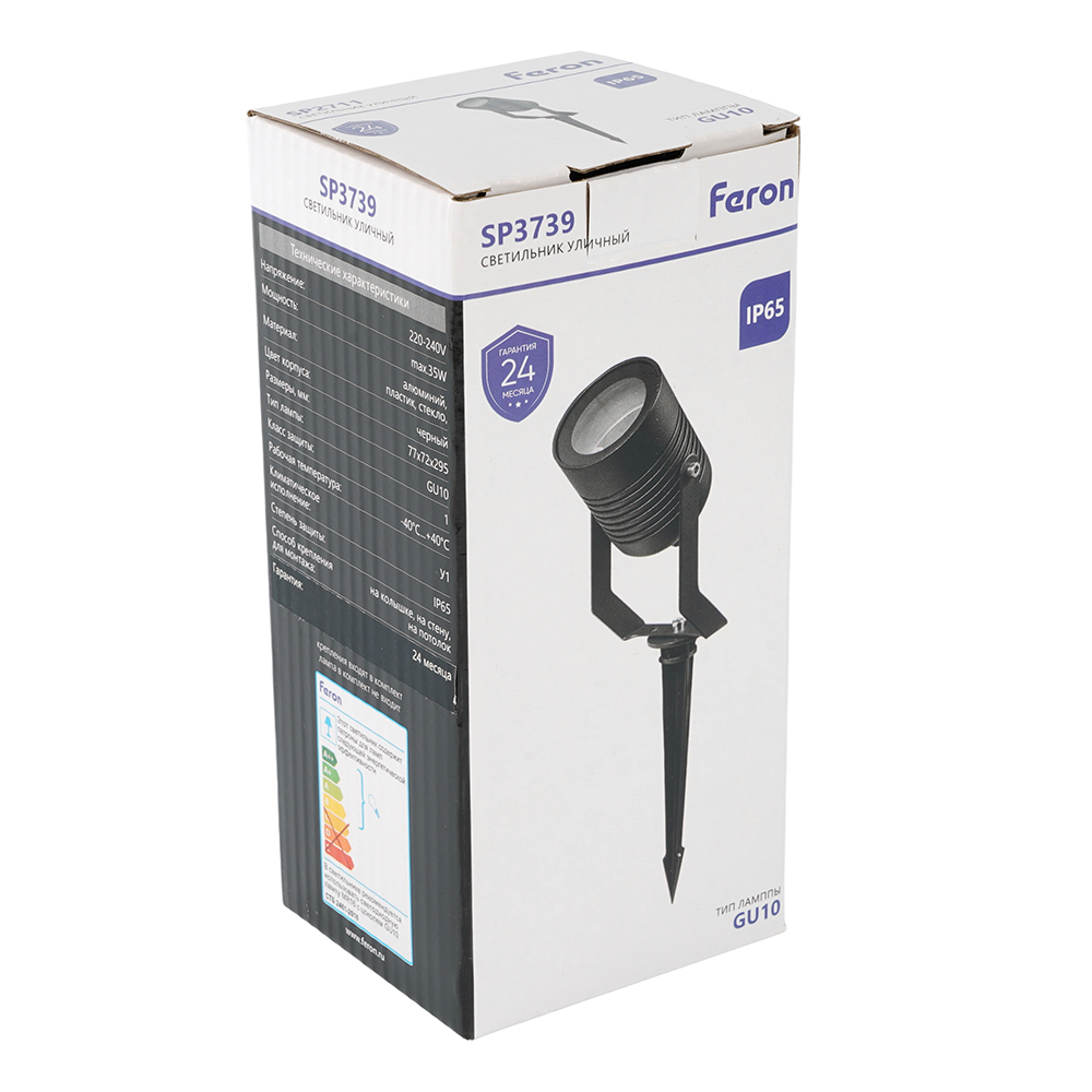 Тротуарный светильник GU10, на колышке (ДВУ) FERON SP3739, 220-240V/50Гц, IP65, класс защиты 1, раб.t -40°C...+40°C, цвет черный, корпус алюминий, пластик, стекло, 77*72*295мм,
